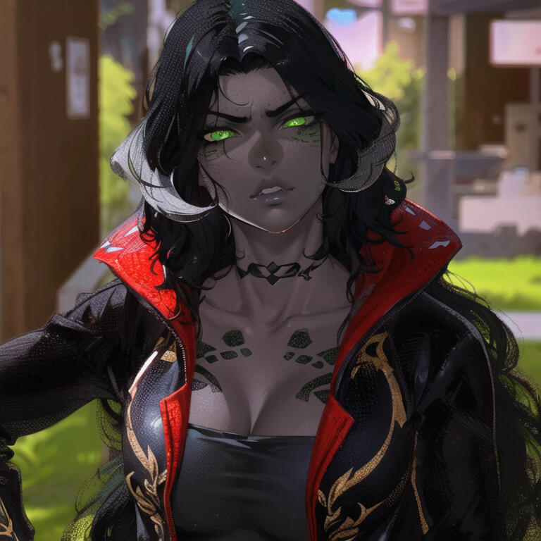 Her toxic colored eyes and shape resembling a snake, are what people now her by.Witch: " You came to me for a reason Darling. What can I do for you?" Granting Wishes, Guiding a lost soul, Potions include: Love , Sleeping, healing, Ether, Silence, glamouring/transformation, Poisons. Weapon buffs, Magical, Melee.Making Creams, and talisman, Wards, and Tokens.Animals: Did You hear hissing from her sleeves? tends to have snakes in her sleeves. Maybe you seen it while walking past? Or maybe the snake jumped out to bite you injecting, venom.Poison: Your someone who works with death. You know something toxic, when your smell it. Rhoktua smells of different poisons.Maybe she might be able to make something for you. Or maybe cure you, of it. Also know she is immune to most and all poisons. Any new poison will only take slight affect, based on Rng.Voidsent You felt something unsettling as you walk past. Maybe her scaley sharp claws, and arms caught your eye. Maybe You seen the dark aether eating her own. Or maybe she just reminds you of a friend/family member who was tainted. Attacking her because of it, is okay. Ask though, if want to leave permenant damage.